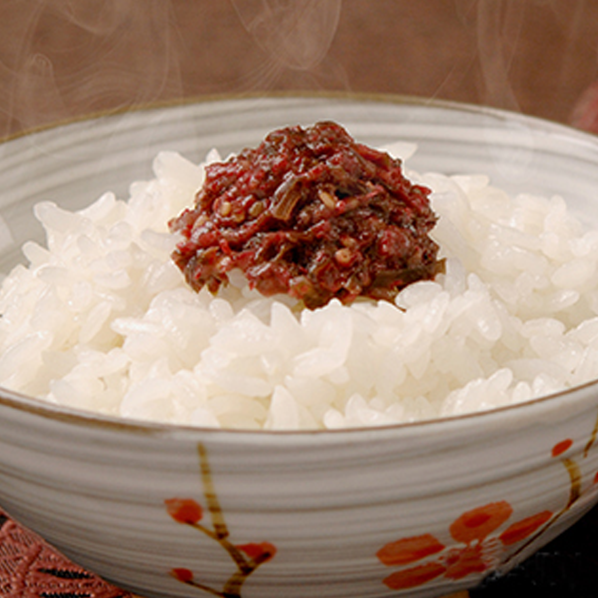 国産の梅肉に小魚、昆布、胡麻を合わせてじっくり炊きました。温かいご飯に、おにぎりの具として、またお茶漬けにのせてもおいしくお召上がりいただけます。
